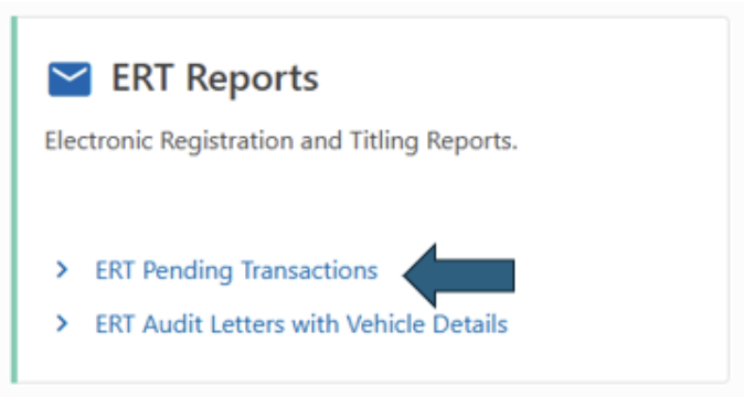 - The MVA business portal has been enhanced to allow dealers to access and view their transactions that are pending in the ERT system. Weekly letters will also be issued to dealers that have transactions that have been pending for over 15 days.